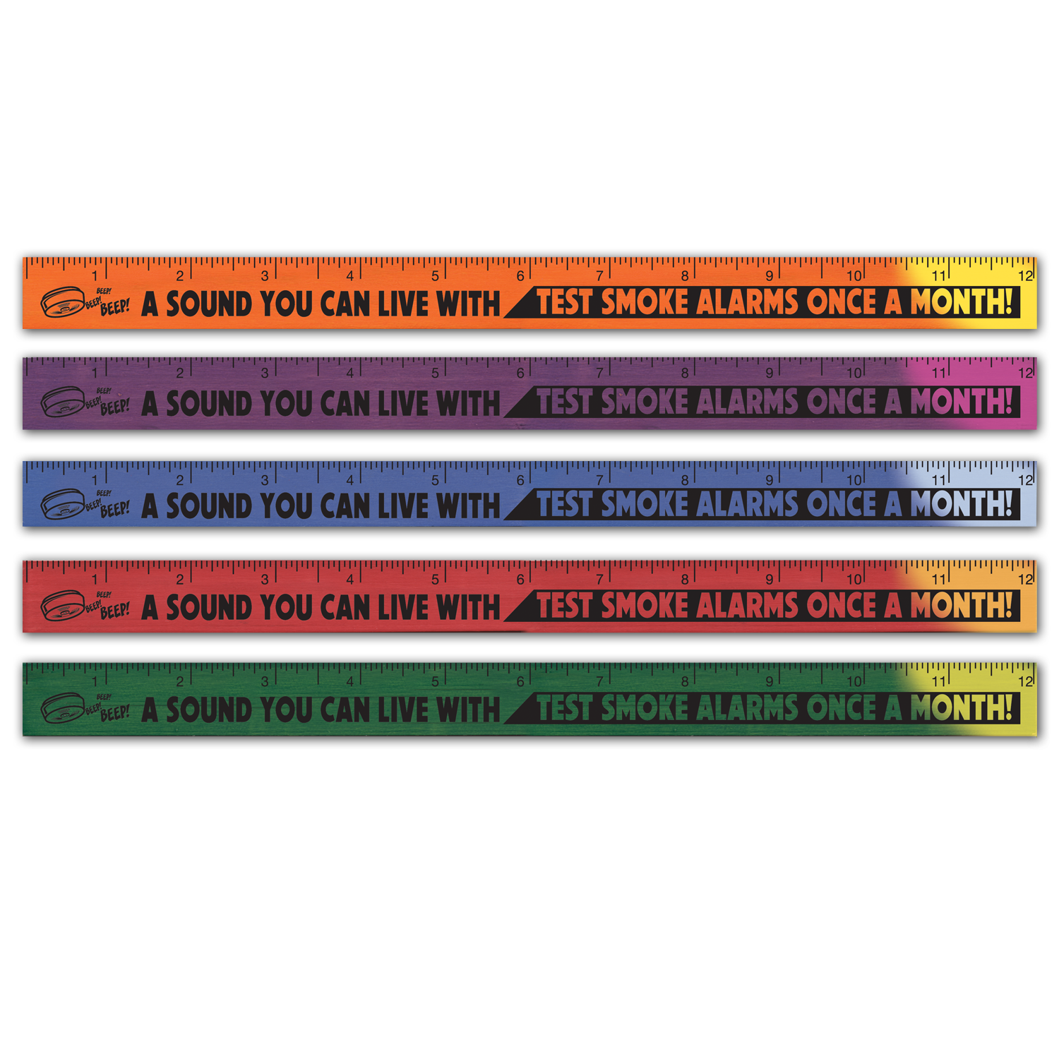 These wooden 12" rulers come ruled in inches and are assorted in 5 colors shown.