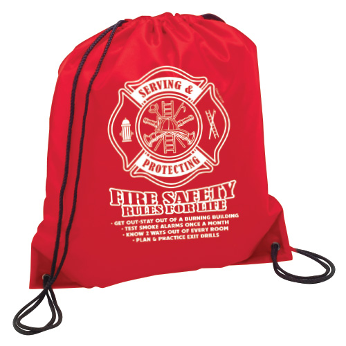 Stock Drawstring Backpacks - Fire Safety Rules For Life
