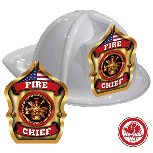 Stock White Jr, Fire Chief Hat - Scramble Shield